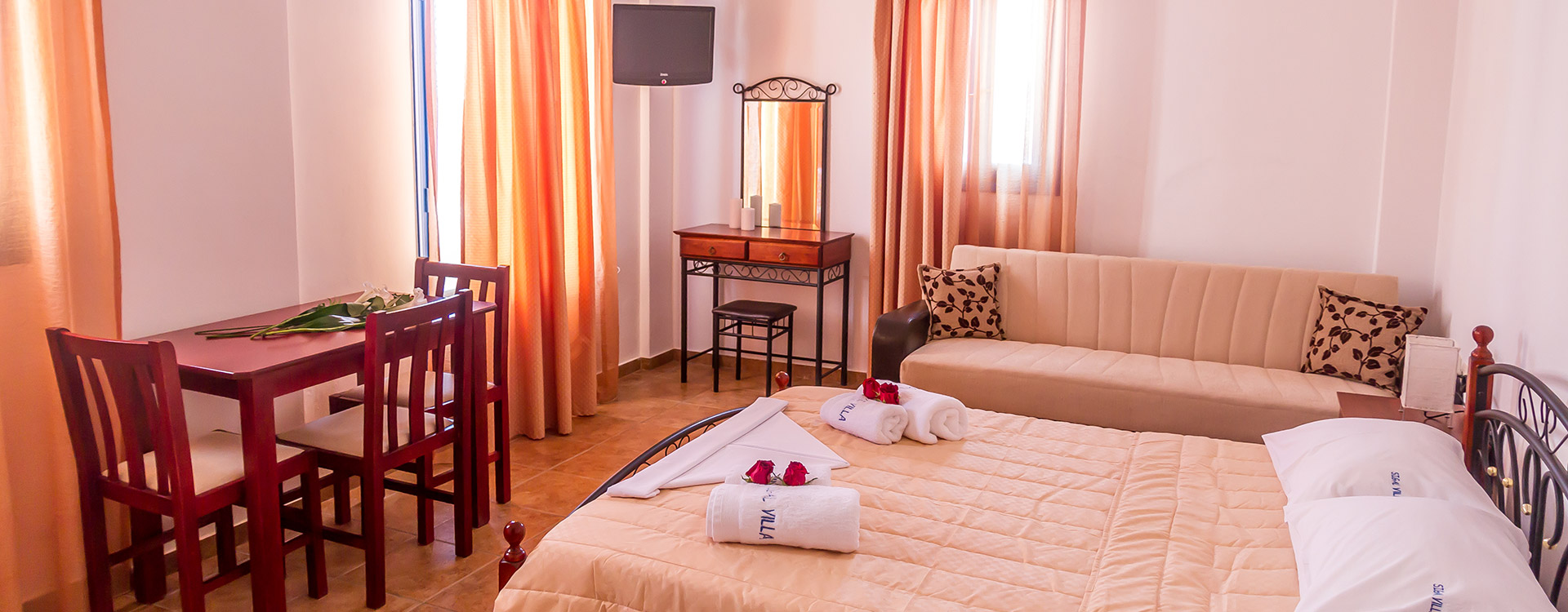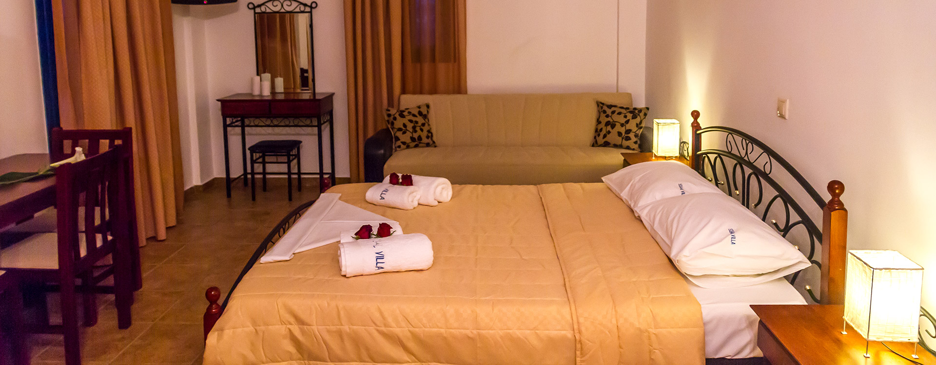 Το δωμάτιο αυτο βρίσκεται στο πρώτο όροφο του καταλύματος. Διαθέτει ένα μεγάλο ιδιωτικό μπαλκόνι με θέα στη Καλντέρα και στη θάλασσα. Ειναι παραδοσιακά διακοσμημένο και μπορεί να φιλοξενήσει έως 3 άτομα. Στο δωμάτιο αυτο υπάρχει ένα διπλό κρεβατι, ένας καναπές κρεβατι, τραπεζαρία και ένα μικρό κουζινάκι.